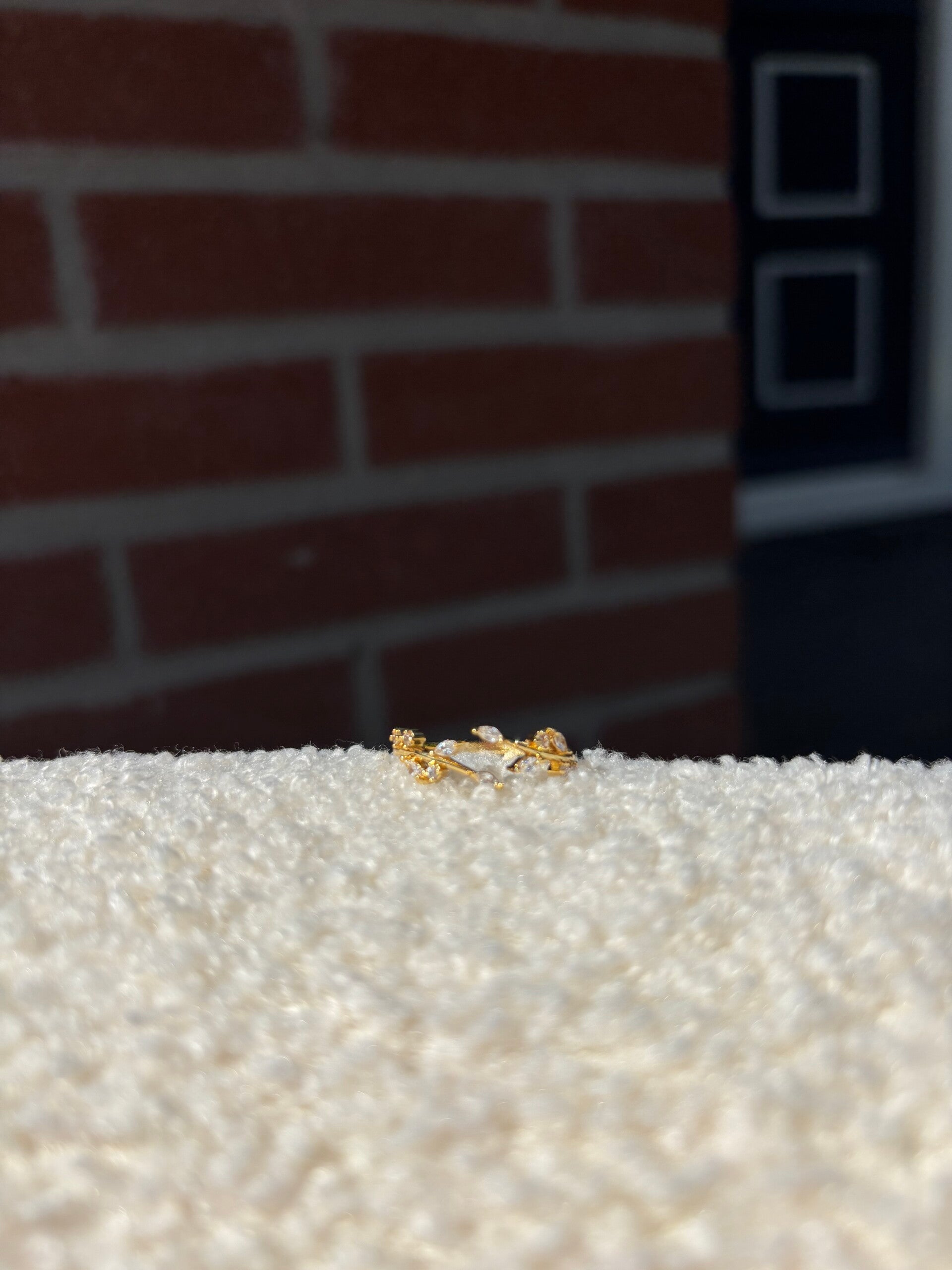 RVS ring met zirconia steentjes. Heel elegant en open aan de bovenkant en daardoor verstelbaar